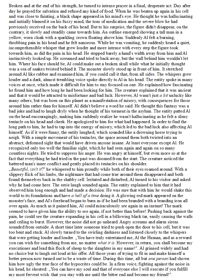 As a long-time horror, gore and metal fan, it wasn't easy for me to find something suitable at first. My original idea was actually to do something about a 'Dibbuk Box' or a Wendigo, however I ended up choosing a homage to the King in Yellow from the Lovecraft universe, Hastur.